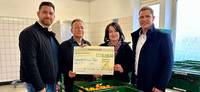 Hier wollen wir gern helfen: Christian Horstkötter (rechts im Bild) und Christian Gemsa (links im Bild) haben heute im Namen der Masterflex SE einen Scheck in Höhe von 2.200 Euro an Hartwig Szymiczek und Anne Bremer von der Gelsenkirchener Tafel übergeben.
