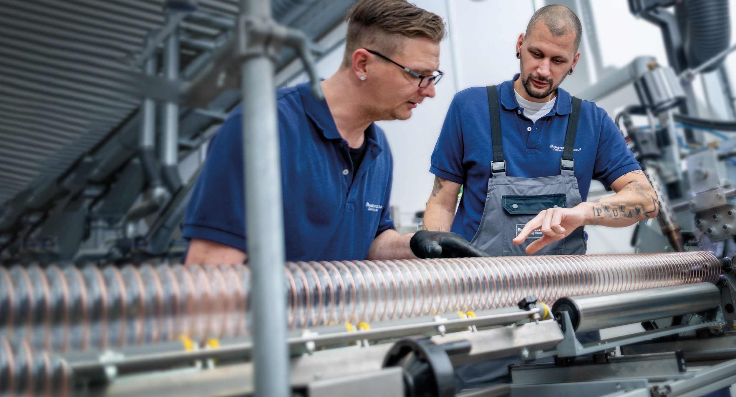 Wolfgang Carle und Daniel Kores, Mitarbeiter in der Abteilung Extrusion bei Masterflex.