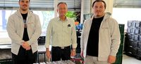 Mert Alican (apprentice industrial clerk) and Jan Louven (also apprentice industrial clerk) lent a hand at the Gelsenkirchen Tafel (see photo with Tafel managing director Hartwig Szymiczek in the middle).