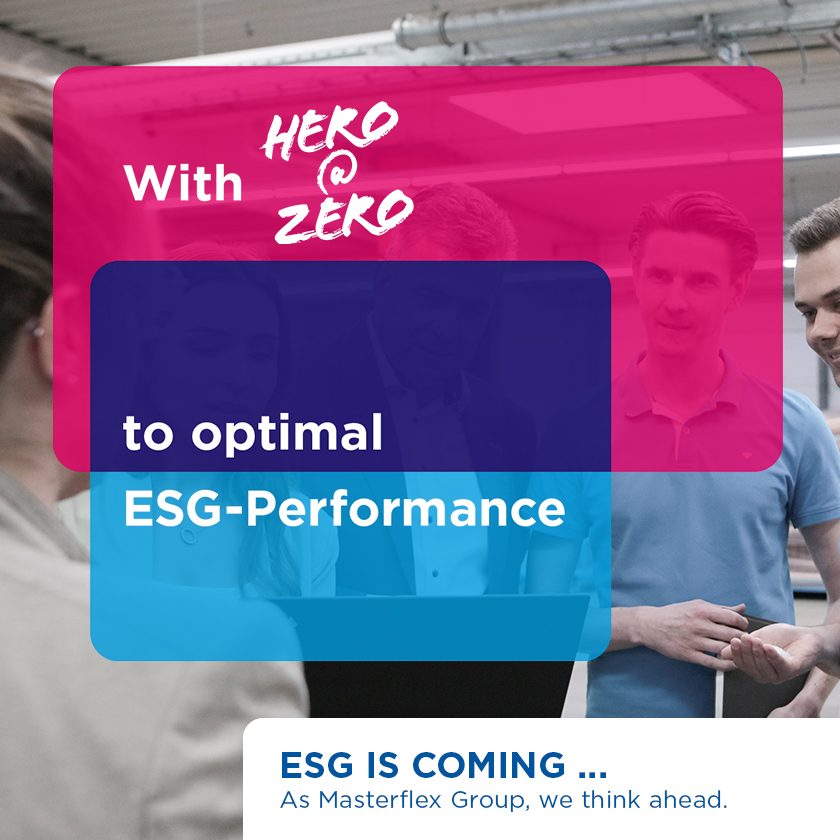 The vision is to gradually reorganize the current consulting and product business and expand it to include additional services such as take-back, recycling and eco-certification. As a leading company in its market ("Hero"), the Masterflex Group is thus committed to not consuming any additional resources (i.e. "Zero").